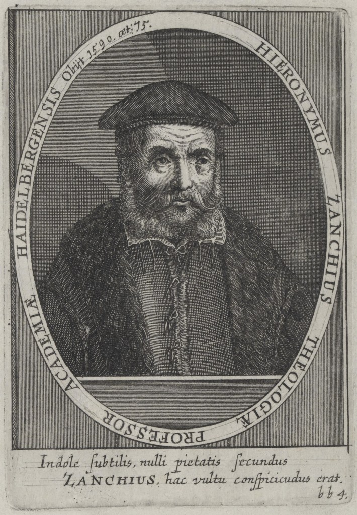 Girolamo Zanchi was a Reformed scholastic theologian of note in the later sixteenth century. He was born in Alzano, Italy in 1516, became a priest and public preacher in the Lateran Order of Canons Regular. Under the influence of Peter Martyr Vermigli, he embraced Reformation theology. For nearly a decade, he ministered to an underground church until, in 1551, he fled to Protestant Europe. He spent most of the rest of his life as a professor or pastor in Strasbourg, Chiavenna, Heidelberg, and Neustadt.